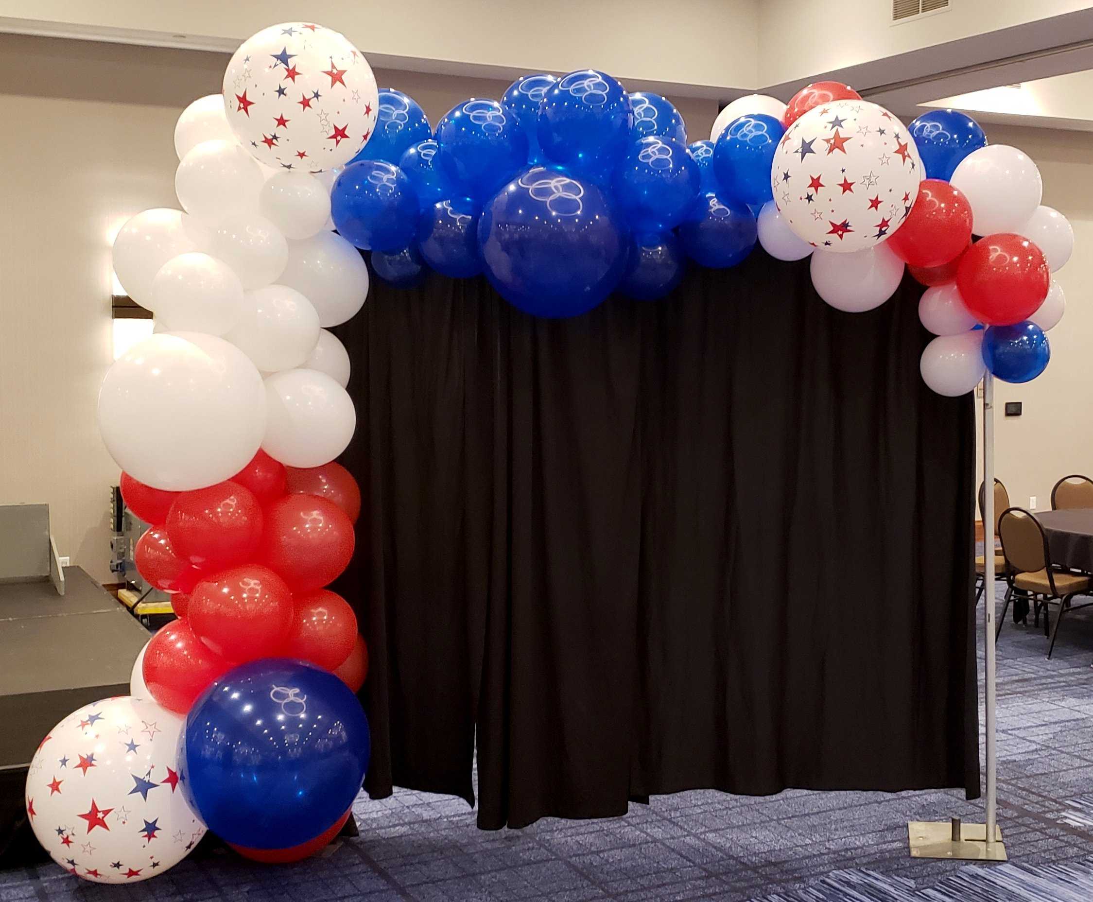 We can create one of these special Organic balloon garlands in any color combination to highlight your photo backdrop area.